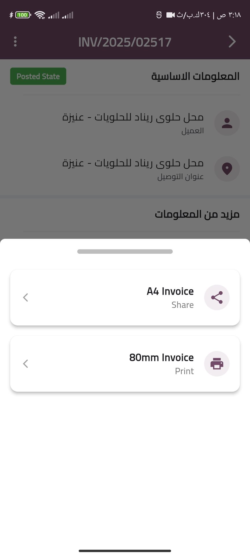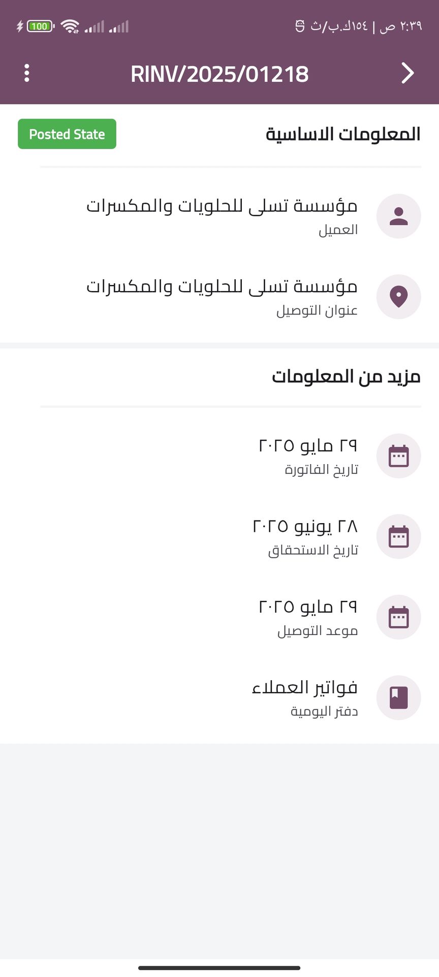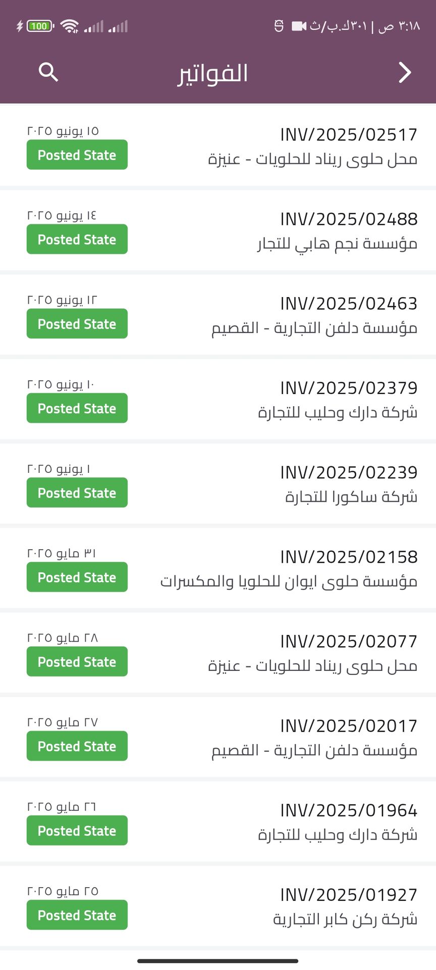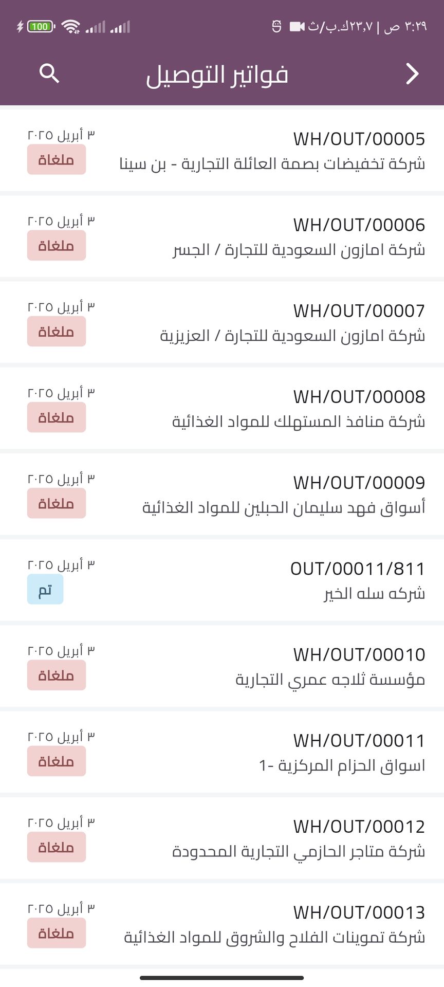 Delivery invoices Screens