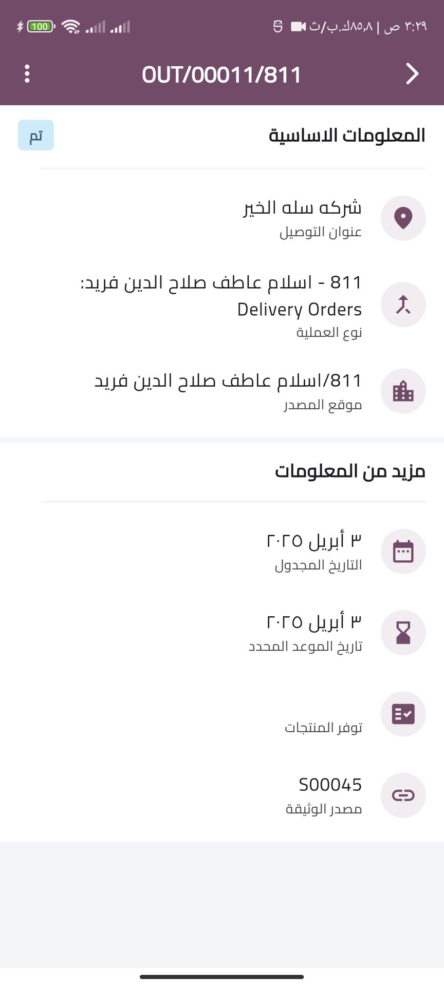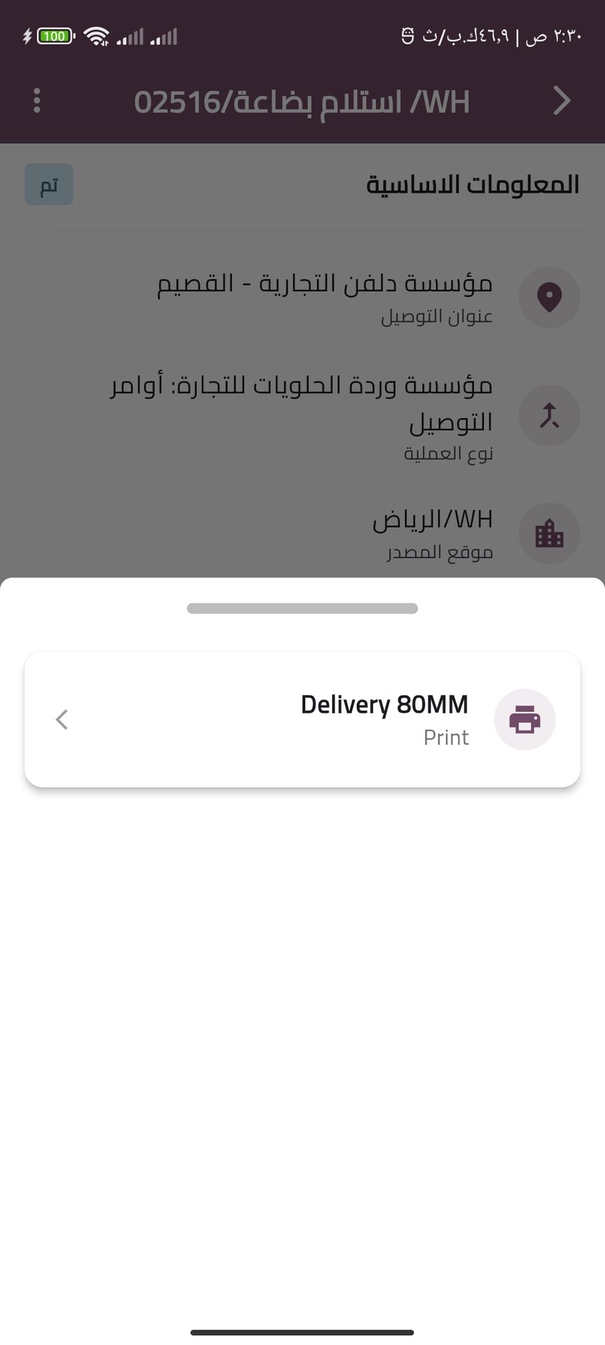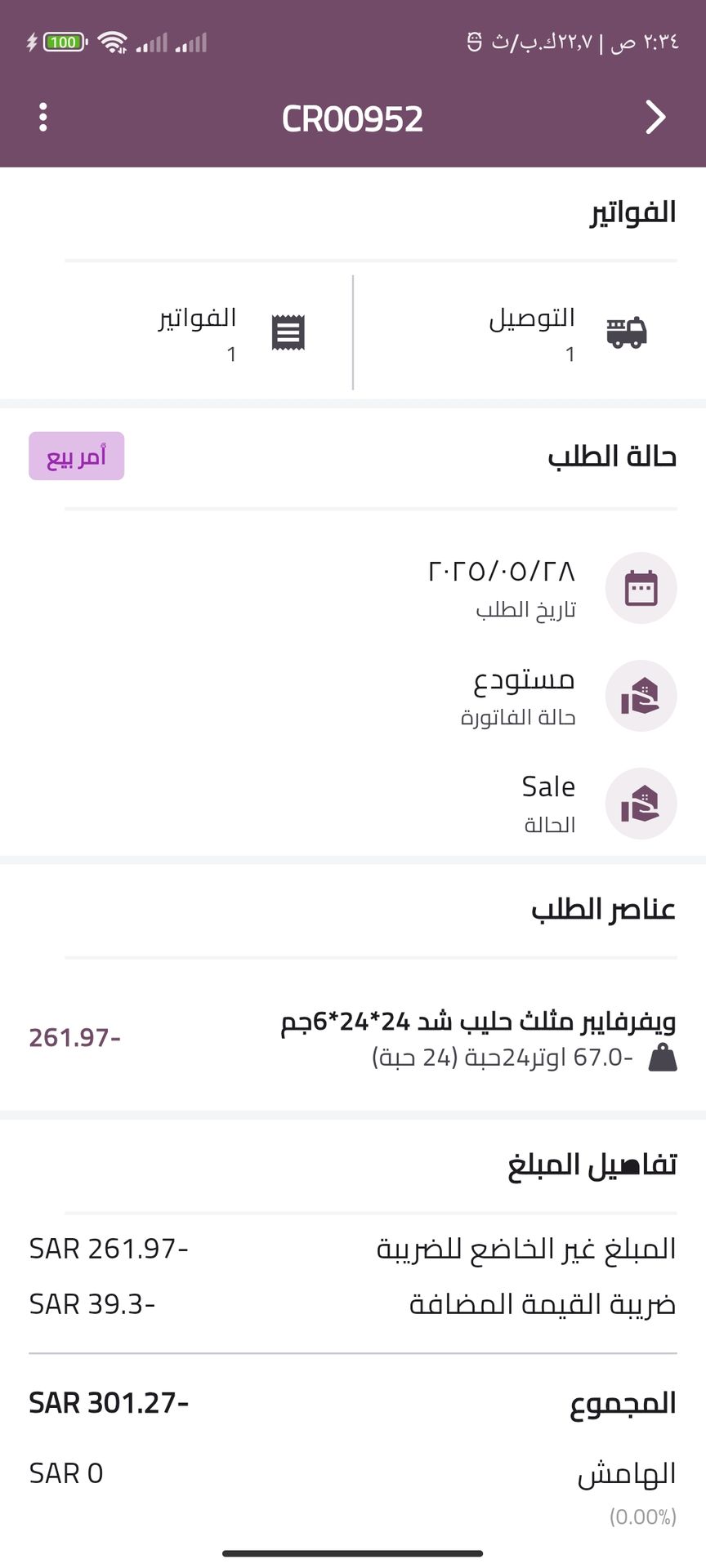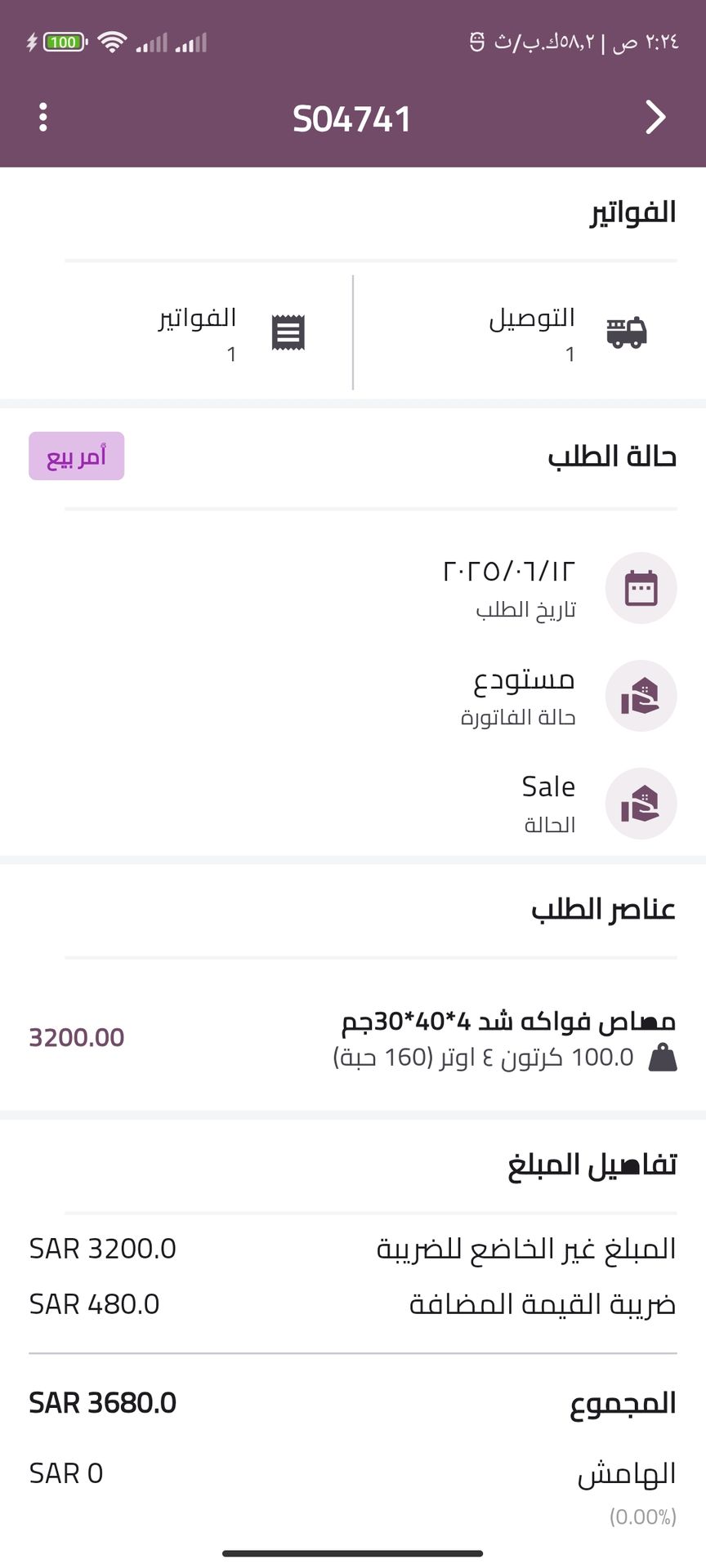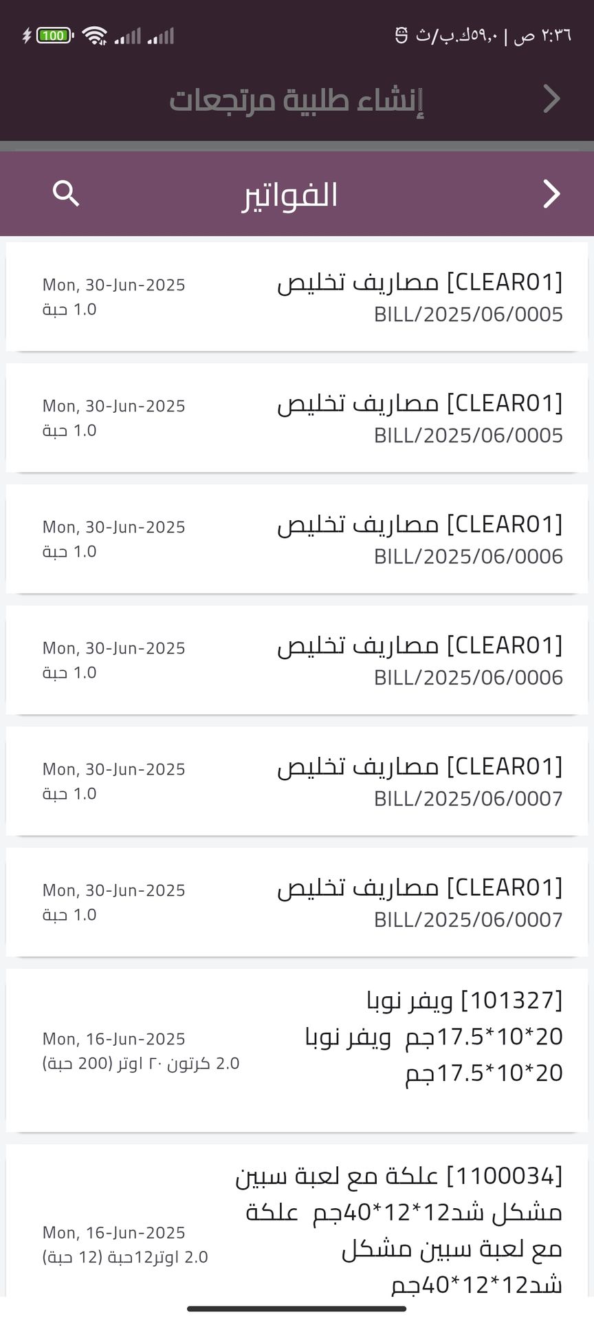 Delivery invoices Screens